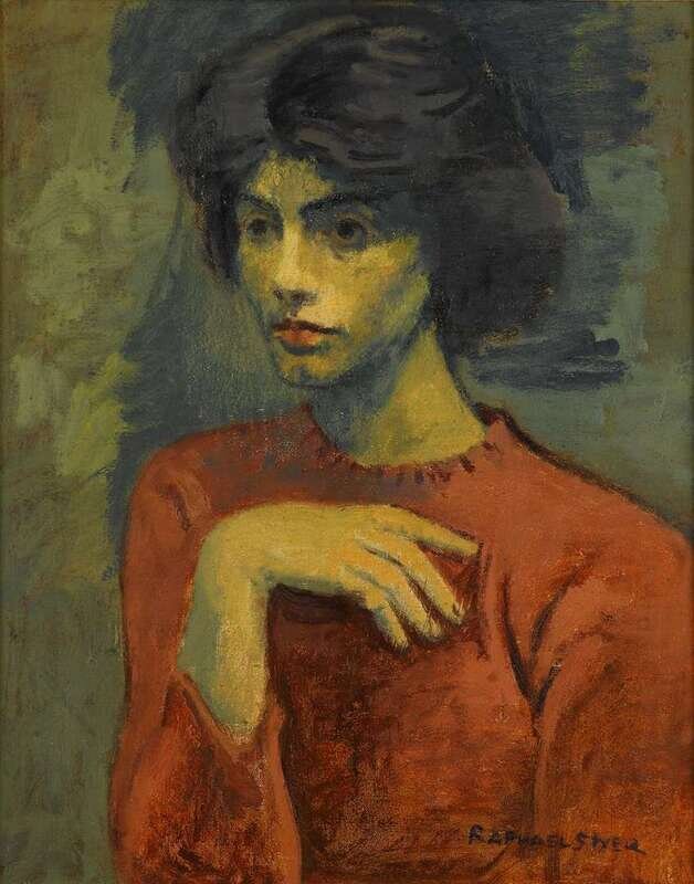 RAPHAEL SOYER (AMERICAN 1899-1987) WOMAN WITH RED SWEATER