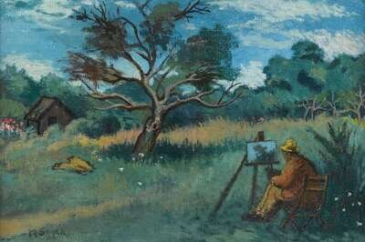 MOSES SOYER (AMERICAN 1899-1974) "DAVID BURLIUK PAINTING (THE IMPRESSIONIST)"