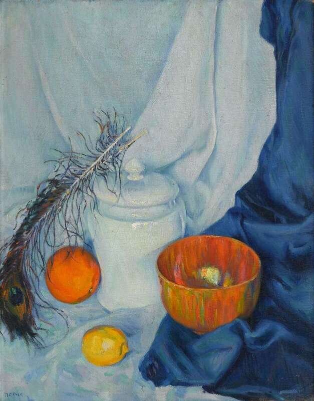 ROY CLEVELAND NUSE (AMERICAN 1885-1975) STILL LIFE WITH PEACOCK FEATHER