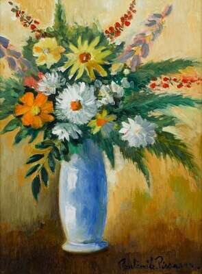PAUL EMILE PISSARRO (FRENCH 1884-1972) STILL LIFE OF MIXED FLOWERS IN A BLUE VASE