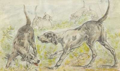 ARTHUR FITZWILLIAM TAIT (AMERICAN 1819-1905) HOUNDS ON THE SCENT
