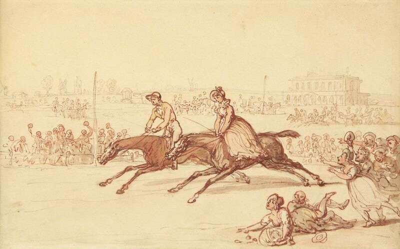 THOMAS ROWLANDSON (BRITISH 1756-1827) "MRS. THORNTON RIDING AT YORK"