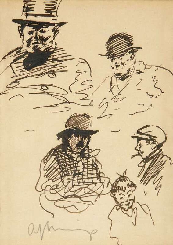 Pencil signed 'AJ Munnings' bottom right, ink on paper