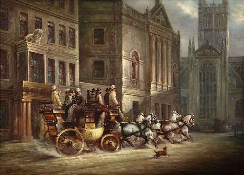 JOHN CHARLES MAGGS (BRITISH 1819-1896) THE NIMROD COACH ENTERING BATH