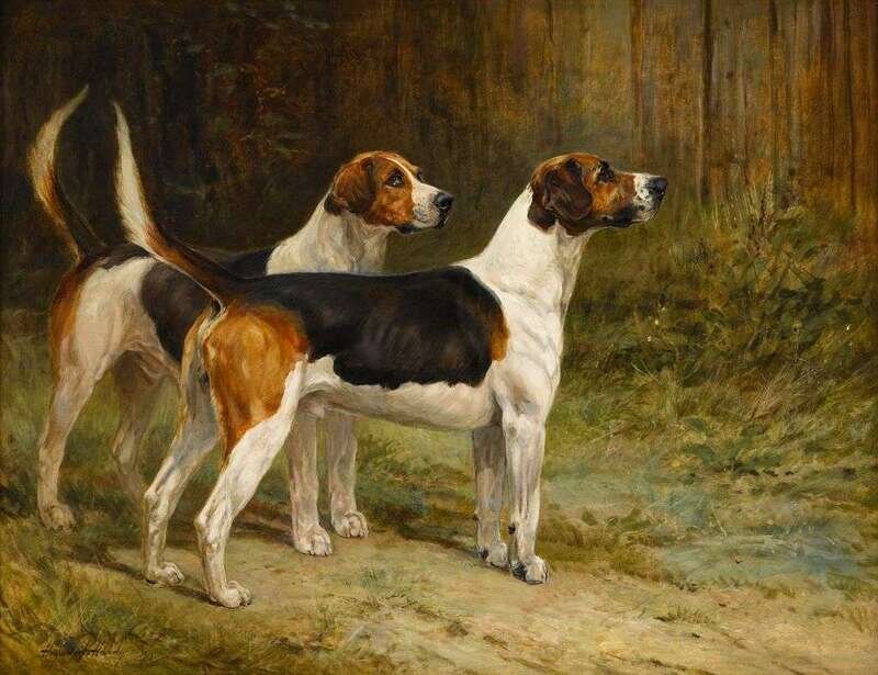 HEYWOOD HARDY (BRITISH 1842-1933) "FOX HOUNDS"