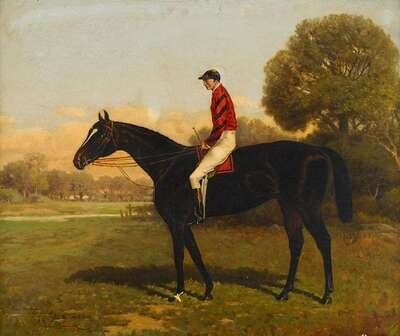 HENRY STULL (AMERICAN 1851-1913) "'IROQUOIS' WITH FRED ARCHER UP, WINNER OF THE EPSOM DERBY, ST. LEGER AND PRINCE OF WALES STAKES, 1881"