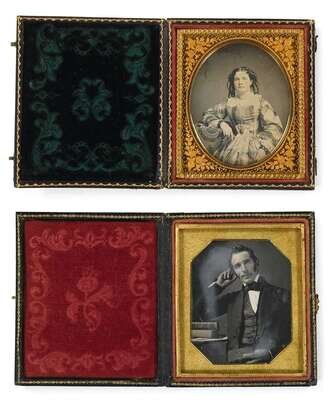 Sixth plate daguerreotypes depicting men and women in various poses. Some with partial cases.