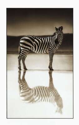 NICK BRANDT (BRITISH B.1966) "ZEBRA ON LAKE, NGORONGORO CRATER"