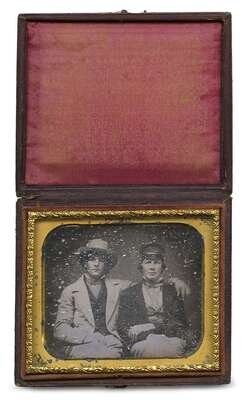 Sixth plate daguerreotypes depicting men and women in various poses. Some with partial cases and original seals.