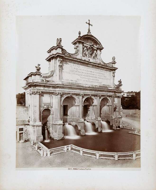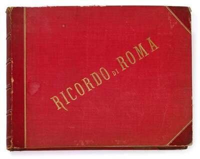 Album of 50 albumen prints of Rome bound within red cloth cover with red leather binding.