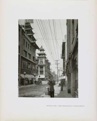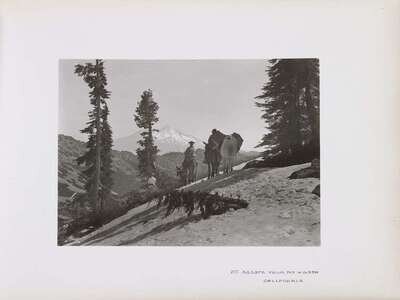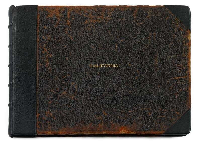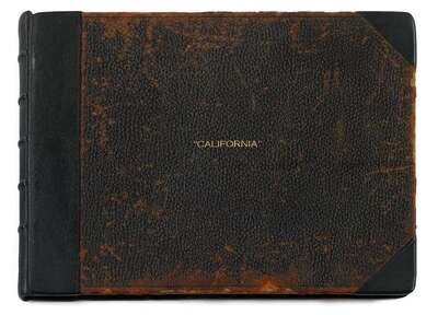 Leather bound album featuring 50 photographs of California scenes, with printed inscriptions on each page. Each image approx: 6 x 8 in. (15.2 x 20.3cm)