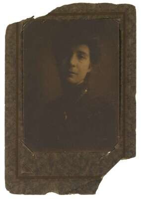 1905, with sitter and photographer's name inscribed verso. Toned platinum print mounted to album card.