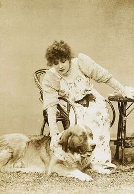 Napoleon Sarony, Sarah Bernhardt petting a dog.