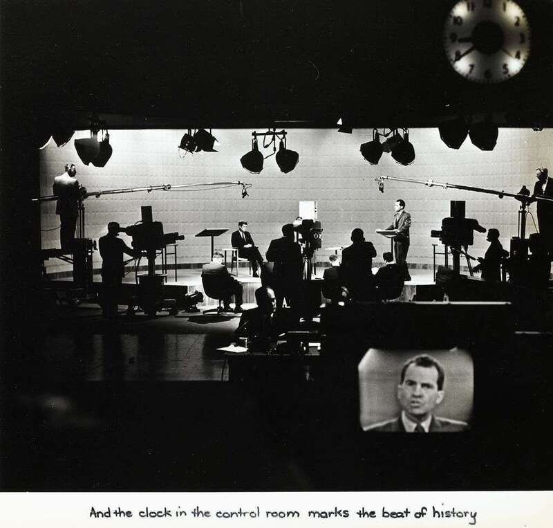 Ca. 1960. Unique photo album of 62 gelatin silver prints depicting the September 26,1960 Kennedy/Nixon debate with hand-lettered inscriptions and original binding and cover embossed with title. Dedicated to Dr. Frank Stanton (president of CBS,1946-1973) on front page by the photographer.