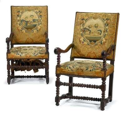 Pair of Louis XIV walnut fauteuils circa 1700