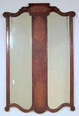 Unusual George I style burl walnut and seaweed marquetry inlaid mirror 19th century