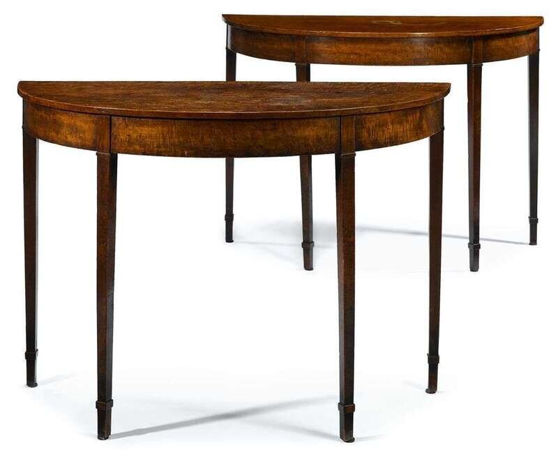 The demi-lune top over plain frieze, raised on square tapering legs.