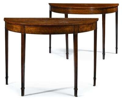 Pair George III oak demi-lune console tables