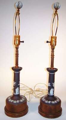 Pair of Wedgwood basaltware lamps late 19th/early 20th century