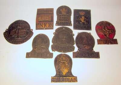 Including four lead examples (two Sun Fire, two Phoenix Assurance), and numerous copper and tin examples, including Norwich Union, Shropshire & North Wales, Protector, Union Fire Office, Exeter West of England, Scottish Union, Imperial, Northern, Imperial, Manchester, Birmingham, and others.