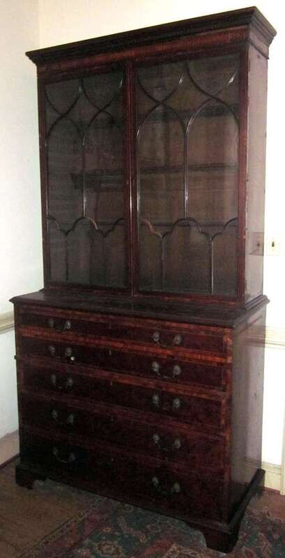 Fine George III mahogany and satinwood secretaire bookcase late 18th century