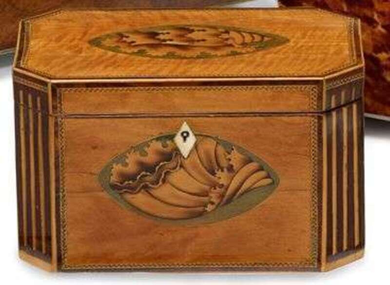 George III satinwood and rosewood marquetry inlaid tea caddy 18th century