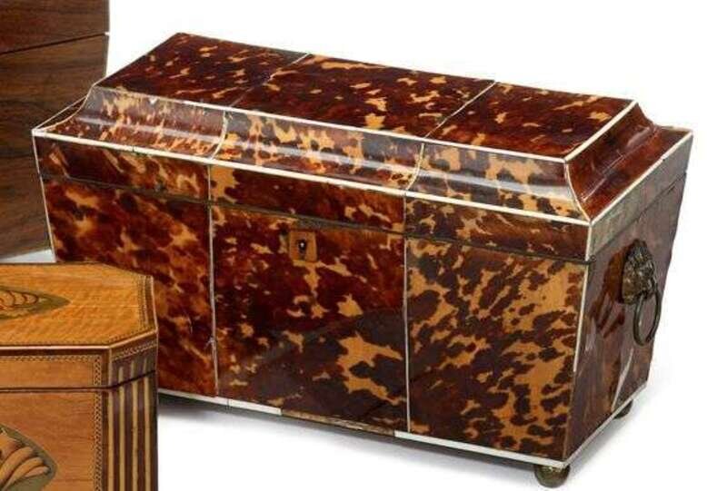 Large Regency tortoiseshell and ivory banded tea caddy circa 1810