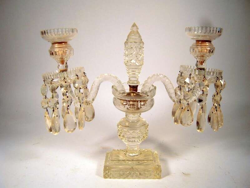 Pair of Regency style cut glass and luster candelabra late 19th century