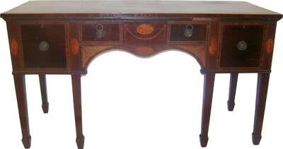 George III satinwood and fruitwood inlaid mahogany sideboard