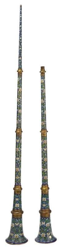 Pair of Sino-Tibetan cloisonne enameled telescopic trumpets 19th/20th century