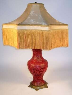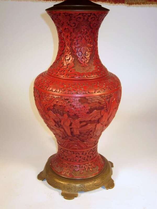 Baluster form, worked to show figures in landscapes, mounted in the early 20th century as a lamp.