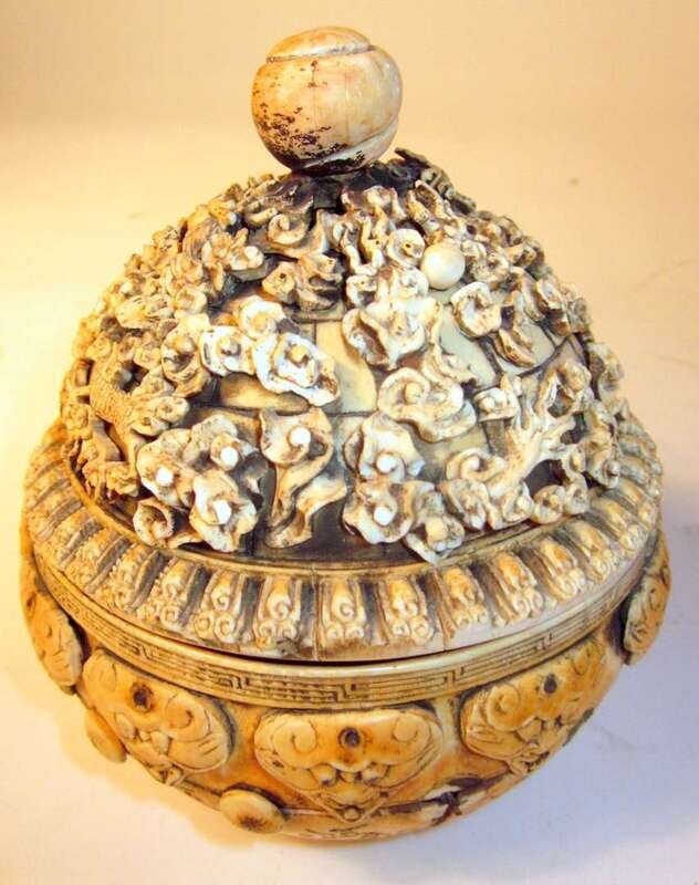 Chinese carved elephant ivory covered censer qianlong mark