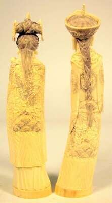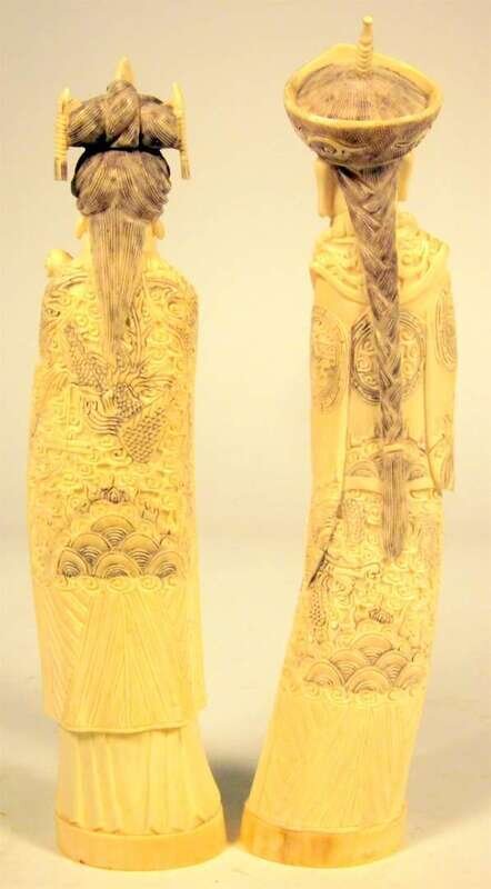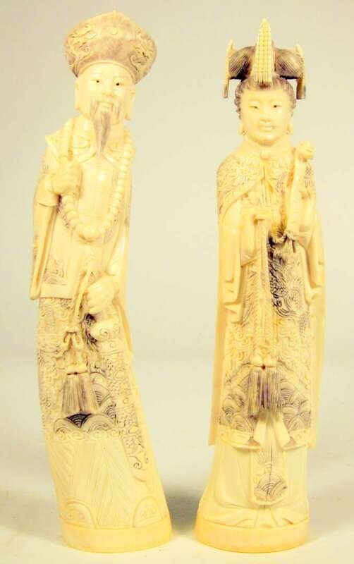 Pair of Chinese carved ivory Emporer and Empress figures qing dynasty