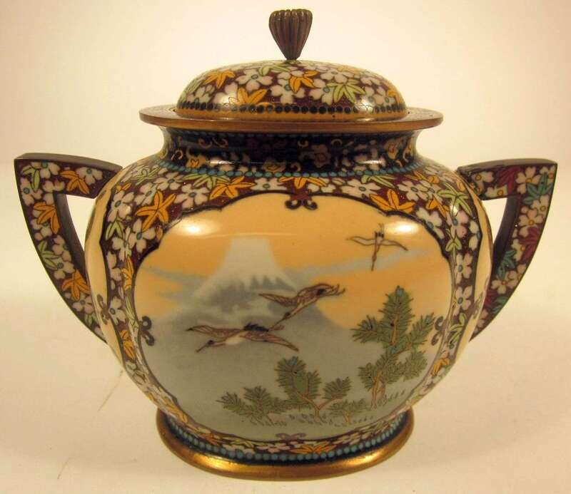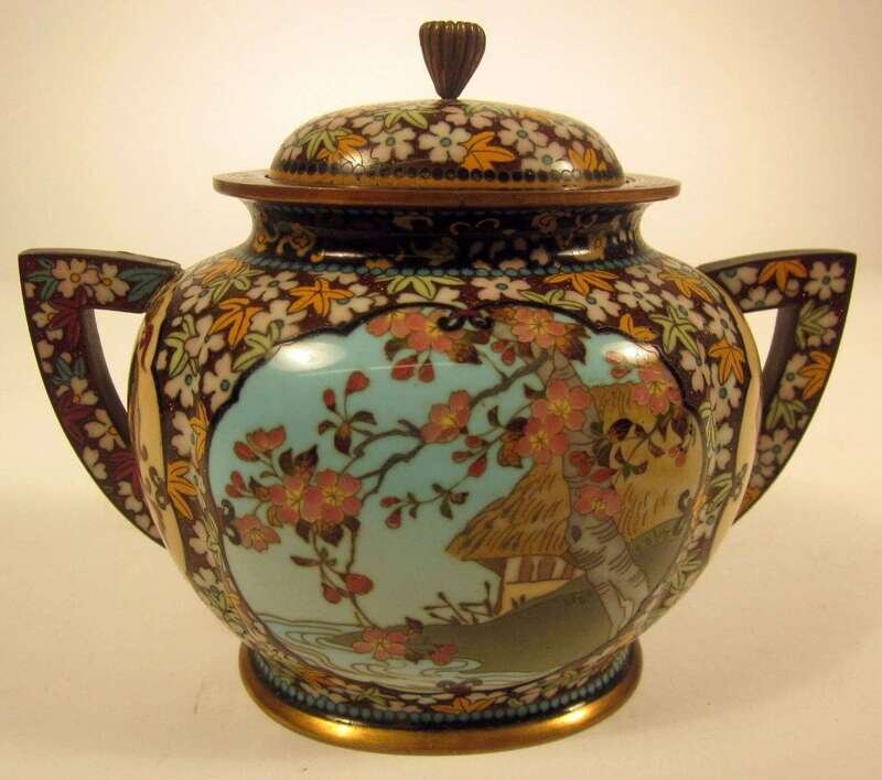 Japanese cloisonne enamel twin handled covered pot meiji period