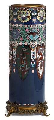 Impressive Japanese cloisonne enamel bronze mounted umbrella stand