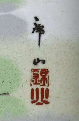 Enameled to show a pair of birds in front of blossoming sprigs, on a pale blue ground, the border and underside enameled to show flowers and scrolls.