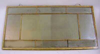 Rectangular, within beaded frame enclosing smaller mirrored plates surrounding the large central rectangular plate.