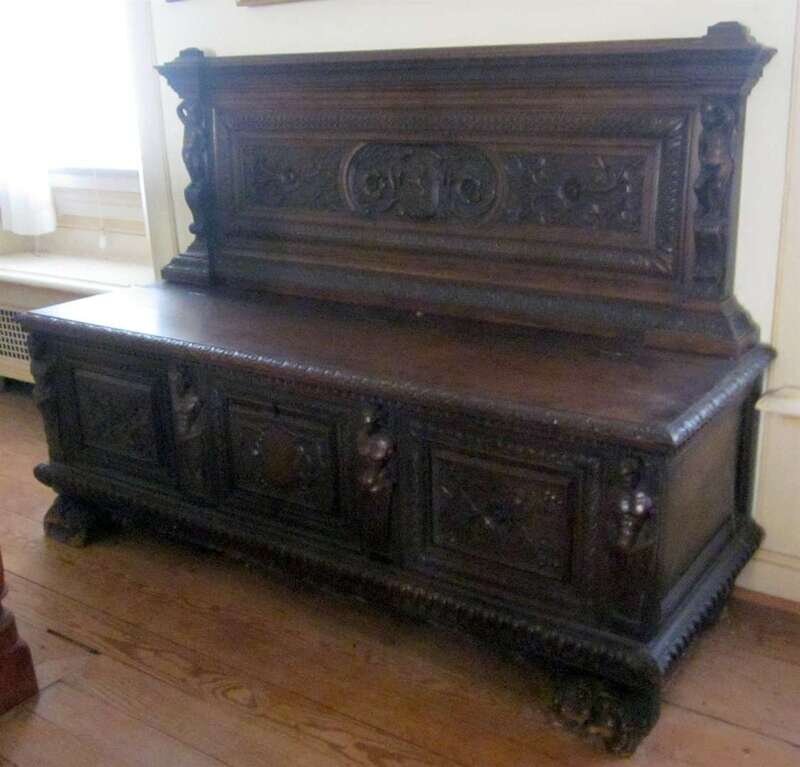 Renaissance revival walnut hall bench