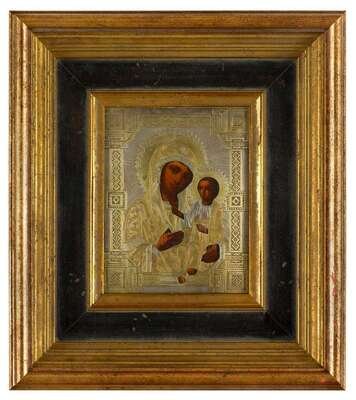 Russian Oklad icon, 'Hodegetria' late 19th century, silver dated 1885