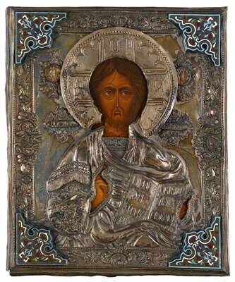 Russian oklad Icon, 'Christ Pantocrater'