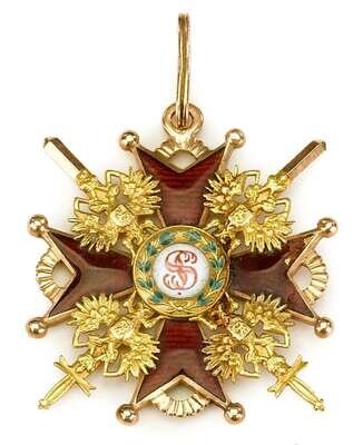 Russian yellow gold, red and green enamel 'Order of St. Stanilaus' badge 19th century, maker's mark ik