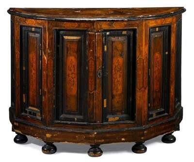 Italian walnut, olivewood and marquetry inlaid cabinet 17th century