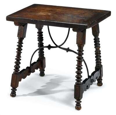 Spanish walnut and wrought iron mounted trestle table 18th century