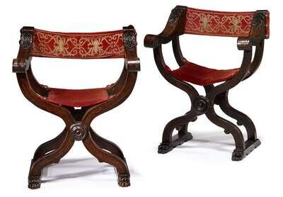 Pair of Italian renaissance style parquetry inlaid walnut folding or 'Dante' chairs 17th century and later