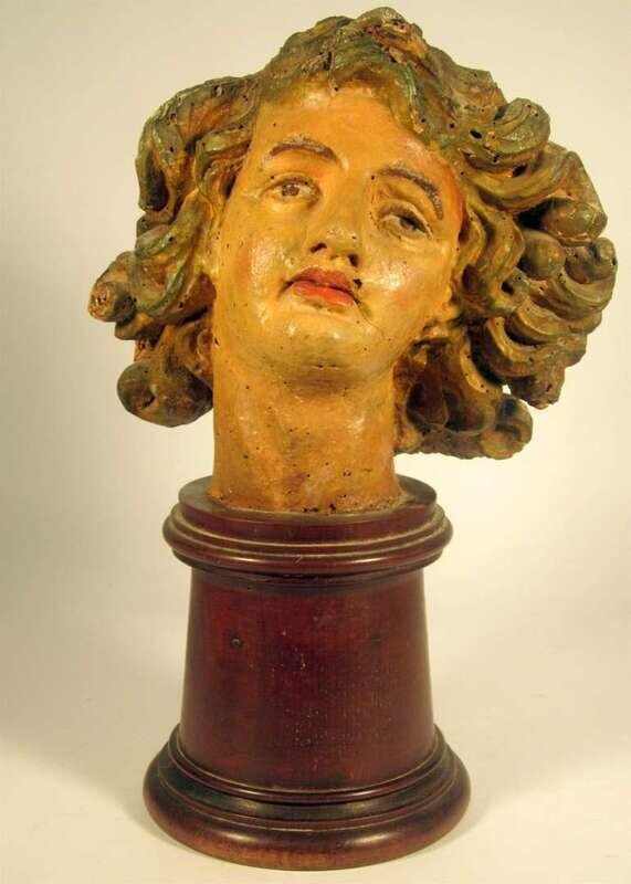 Continental polychrome painted carved wood head of a young man 17th/18th century