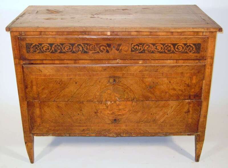 Italian walnut and marquetry inlaid chest of drawers 18th century