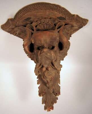 Italian grotesque carved wood wall bracket after a design by michelangelo for the tomb of giuliano di medici