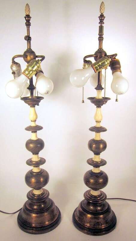 Pair of Continental baroque style pressed brass and bone table lamps late 19th century