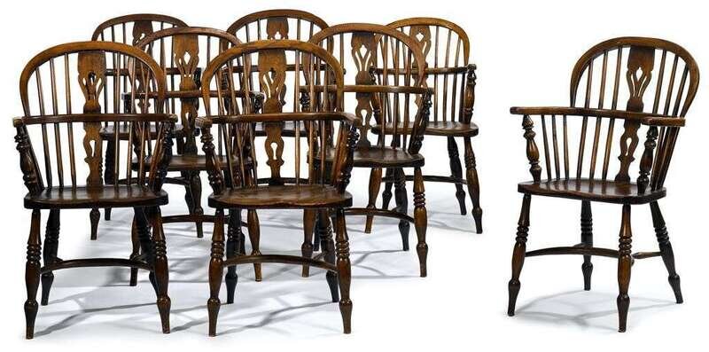 Set of eight ash Windsor chairs 19th century