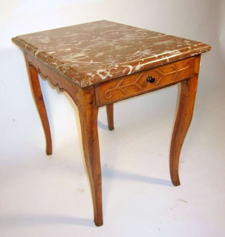 The rectangular rouge marble top with molded edge above single frieze drawer raised on cabriole legs.